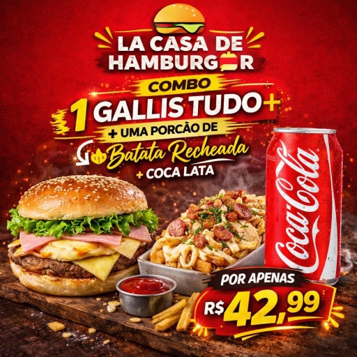 2 carnes, 2 ovos, catupiry, calabresa, salada e batata