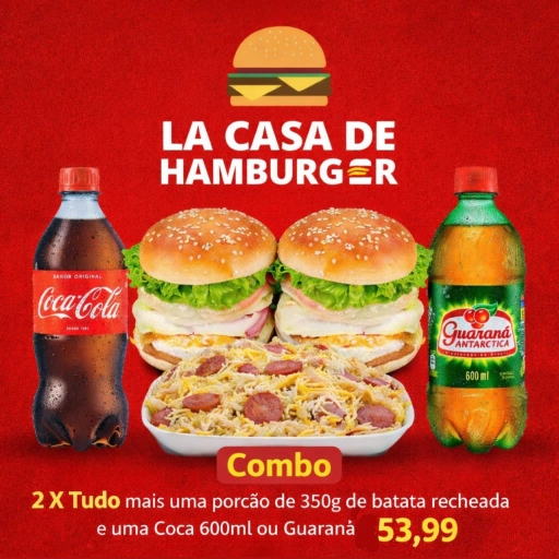 2 xtudo + porcao de batata recheada+ refrigerante 600ml